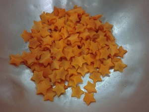 天の川スープに入っているにんじんは,調理員さんが星型に型抜きしてくれました。