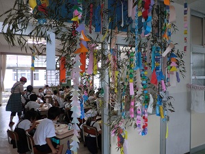 教室の七夕飾りが雰囲気をさらに盛り上げてくれます。