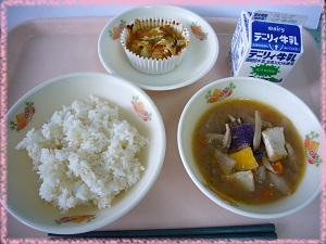 そして,今日のさつま汁に入っているさつまいもは,安房小の1・2年生が育てて収穫したものです。