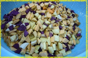 オレンジ・紫・白・黄色と様々な色のさつまいもが混ざっていました。