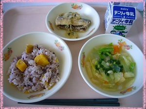 今日は秋の味覚「さんま」を主菜とした献立です。