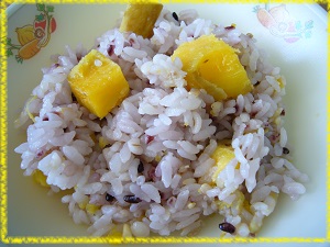 今日のさつまいもは「安納いも」だったので,炊き上がったらくずれてしまうのではないかと心配しましたが,形もしっかり残り,色があざやかで甘みがあっておいしかったです。