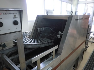 写真は「ガス連続炊飯機」です。今日は4キロ炊きの釜10釜使っておこわを炊きました。