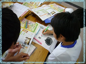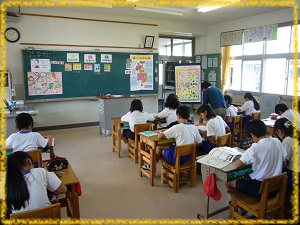 今日は,安房小学校の5年生・6年生と一緒に家庭科の学習をしました。