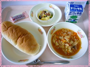 中学校は体育大会振替休日のため小学校のみの給食でした。