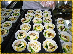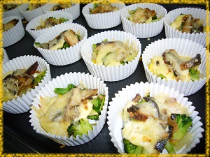 今日は,オリーブオイルとにんにくでスライスしたさば節を炒めて,ボイルした野菜と一緒にカップに入れてマヨネーズ・チーズをかけてオーブンで焼きました。