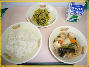 〇 しらす干しと卵のふりかけ 今日は「煮しめ」です。