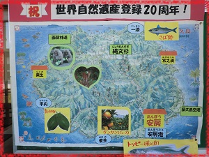 給食掲示板には,昨年度作成した,給食で活用している屋久島の食材マップを掲示しています。