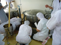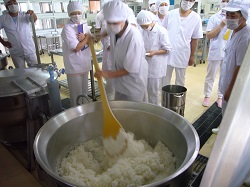 お米は沸騰したお湯の中に米を入れて炊く「湯だき」という方法で15キロ炊きました。