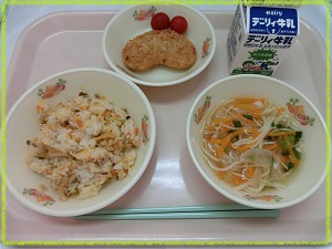 ☆今日の給食☆〇 はんだまのいろどりちらし