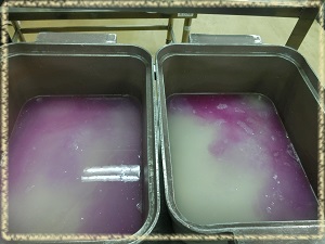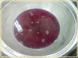 ゆでると,ゆで汁はきれいな紫色になります。