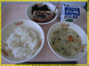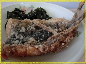 調理員さんがカリッと揚げてくれたので,ひれの部分はおせんべいのような食感です。