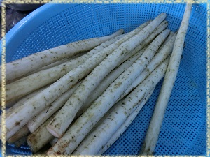 県内産の立派なごぼうが届きました。
