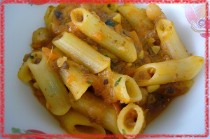 「ボロネーゼ」はイタリアのボローニャ地方が発祥の肉とトマトを煮込んで作ったソースです。今日はペン先の形をしたマカロニ「ペンネマカロニ」をゆでてソースとからめました。