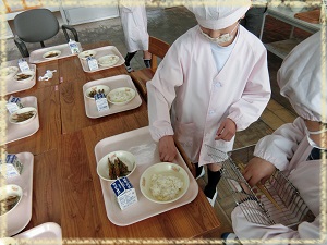 2年生の配膳の様子の写真に給食が少し写っていたのでこちらを掲載させてもらいました。