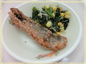 今日は屋久島の新鮮なとびうお(トッピー)を塩麹に漬け込み,唐揚げにしました。