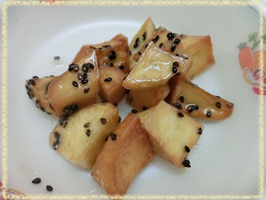 表面はパリパリ,中はふっくらとしたおいしい大学いもが出来ましたよ♪