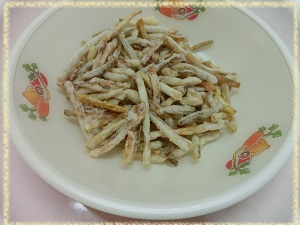 ※ ごぼうは水分をしっかりきり,油に入れる直前に粉をまぶし,パラパラと油に入れ