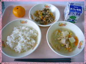 大豆・みそ・とうふ・油揚げ・大豆もやし・豆乳・・・とみそ汁の具を確かめながら,給食の時間に国語の学習をふり返っている姿が見受けられました。