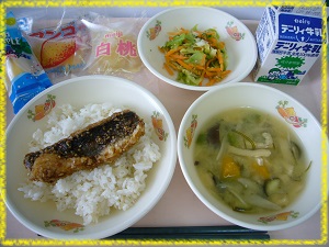 大豆やなす・かぼちゃ・きくらげ・こんぶなどが入った汁です。