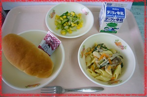 人気の焼きたてコッペパン,サラダとともに,どの学校もよく食べていました。
