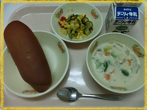 そして,6年生のパンの大きさや,おかずの量の多さにも1年生はびっくりしていました。