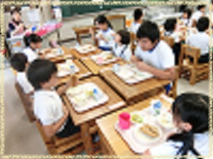 安房小では食育月間にちなんだ様々な行事が計画されていますが,今日はそのひとつ「全学年交流給食」でした。