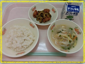 ◯ 切り干し大根のみそ汁 「ゴーヤ(にがうり)」は,沖縄・宮崎・鹿児島で多く生産される夏野菜です。