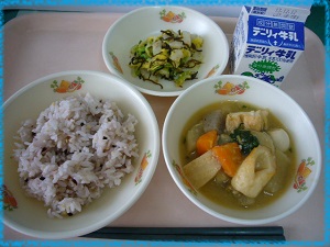 給食のおでんは,さば節でだしをとり,屋久島産の里芋の他,10種類の具をじっくり煮込みました。味がしみこんでおいしかったですね。