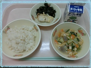◯ けんちん汁 本日は屋久島の「シイラ」を使用予定でしたが,水揚げがなく,漁協さんが「カンパチ」を納品してくださいました。