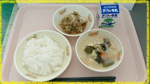 〇 豆腐とわかめのみそ汁 今日は安房小学校日曜参観振替休日のため,神山小学校・安房中学校のみ給食実施でした。