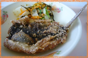 今日は塩麹で味付けしたとびうおをから揚げにしました。