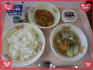 (栄養教諭出張のため不在でしたが,H調理員が撮影してくれました。)