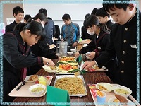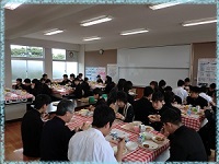 9年間の給食時間で学んだ食事のマナーや,家庭科・学級活動などで学んだ栄養バランスのよい食事のありかたについて振り返りながら楽しいひとときを過ごしてもらえたようです。