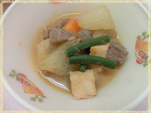 種をとって,皮をむき,大きく切って煮物に入れました。