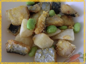 今日は,子どもたちが残さず食べてくれた魚料理「新じゃがと鰆のスパイシー揚げ」のレシピを紹介します。