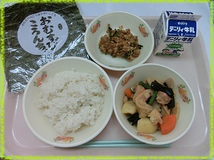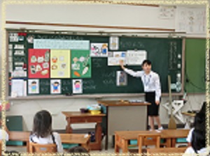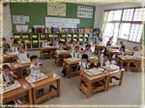 本日3時間目は栄養教諭実習生が1年い組で学級担任と連携した学級活動を行いました。この中でも今日の給食が国語で学習している「おむすびころりん」にちなんだものであることを児童に知らせるなど,まさに給食を生きた教材として活用したとても素晴らしい授業でした。