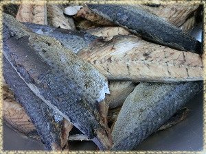 今日の給食や屋久島の家庭で食べているさば節は「さばなまり節」といって,ゆでたさばをスモーク(燻製)したものです。