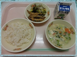「まめまめみそ汁」は,大豆と大豆製品(豆乳・油揚げ・豆腐・大豆もやし)が入ったみそ汁です。