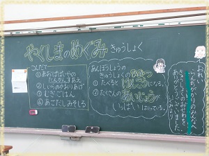 いよいよ夏休みです。夏休み中も規則正しい生活に心がけ元気に過ごしてくださいね。水分補給も忘れずに!