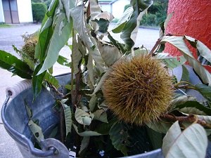 調理員さんが,十五夜用に栗の枝を持ってきてくれました。ススキやお団子をおそなえして,自然の恵みに感謝しながら,今夜は月を眺めたいと思います。
