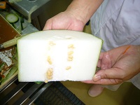 今日はこんなに大きな冬瓜が届きました。カットすると中には種があります。