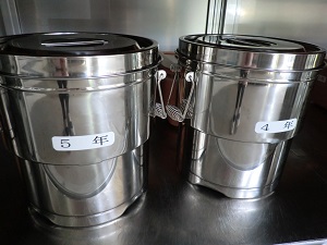 4月より,安房小と安房中の食缶が新しくなりました。ピカピカの食缶大事に使ってくださいね♪