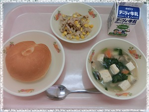 ◯ 小松菜とあさりのスープ 「小松菜」はカルシウムやカロテンを多く含む緑黄色野菜です。