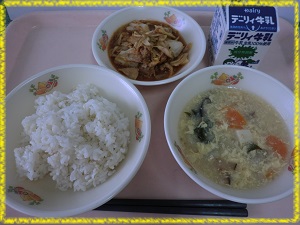台風8号接近により2日間臨時休校でしたので2日ぶりの給食です。