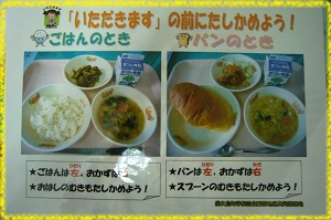 東部調理場では,神山小学校・安房小学校の全学級に「正しい配膳(お皿の並べ方)」についての掲示資料を配布しています。