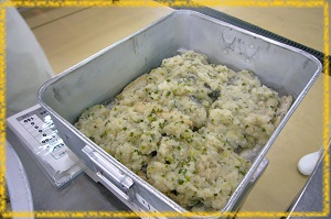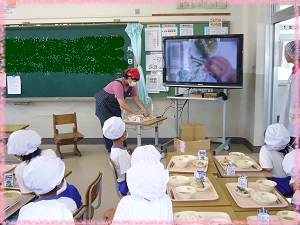 1/2カットだったので,調理員さんにお願いして,小学校低学年には食べやすい尾の部分を配缶してもらいました。