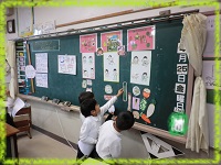 1時間目に2年生と一緒に「じょうぶなからだ」についてのお勉強をしました。