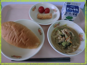 めんがのびないように冷凍めんを使い,汁も多めに作ったのですが,子どもたちが食べるころには「汁なしタンタンめん」になってしまい残念でした。