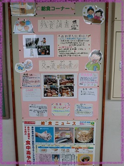 先日の交流給食後のインタビューや残食調査の結果について給食委員会の児童がまとめてくれました。